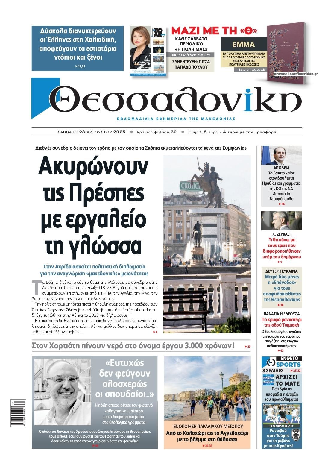 Αποκαλυπτική και αυτό το Σάββατο η εφημερίδα Θεσσαλονίκη