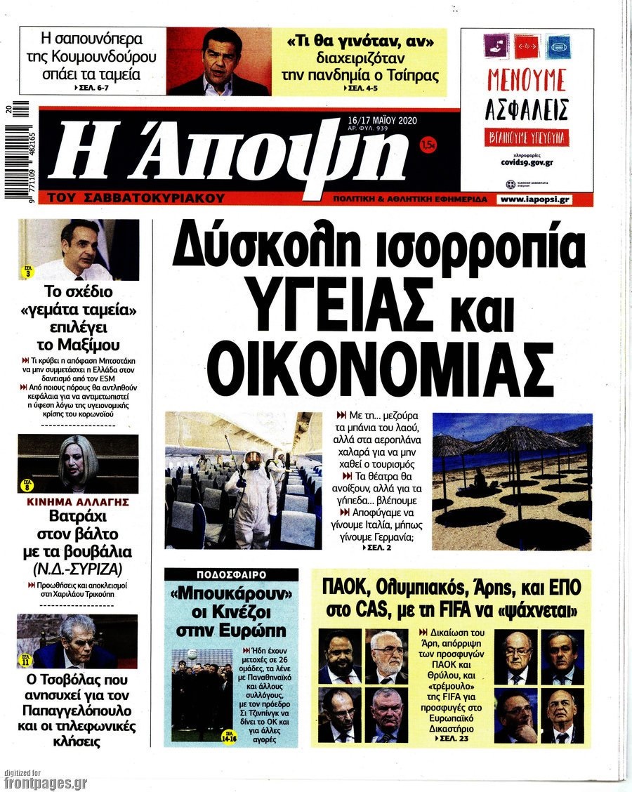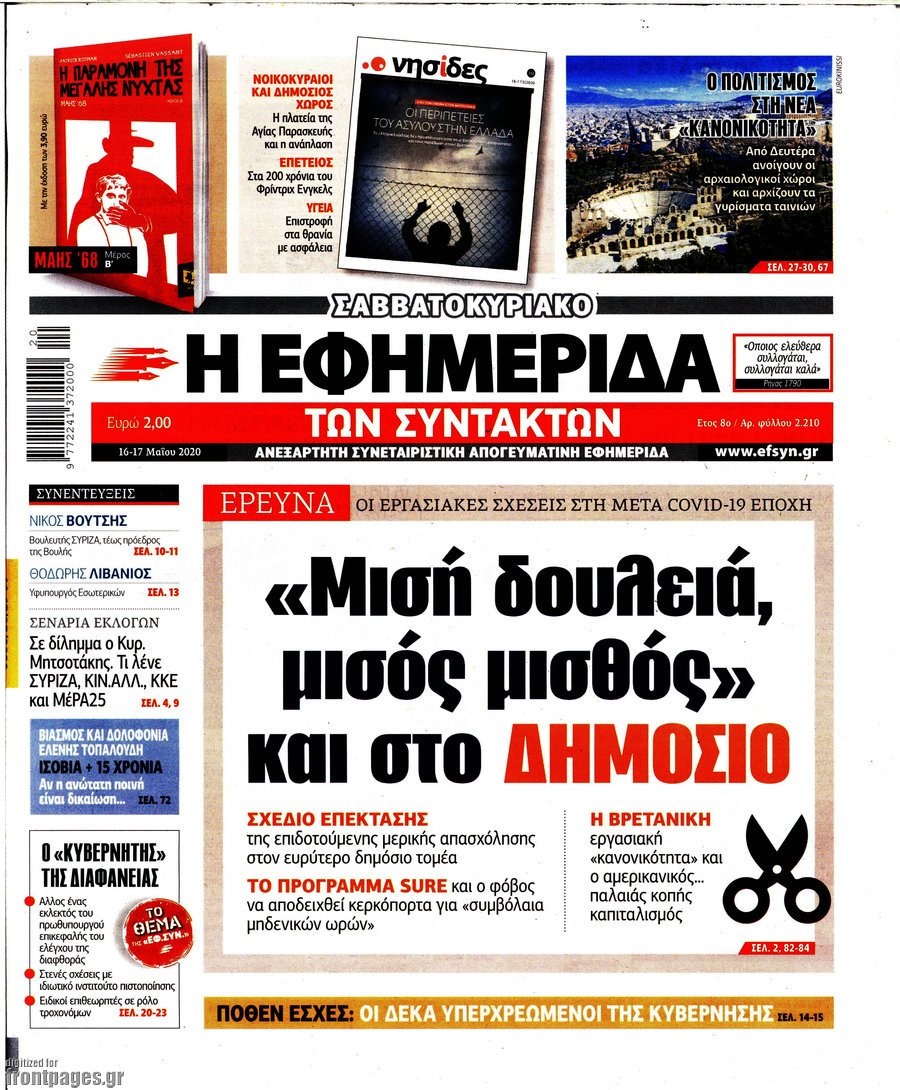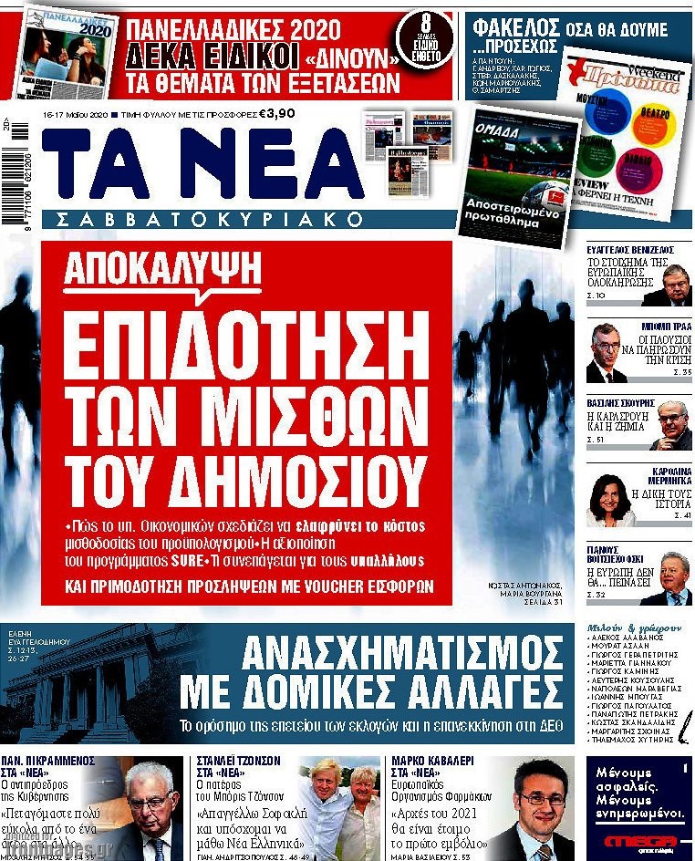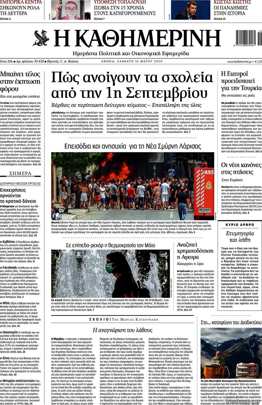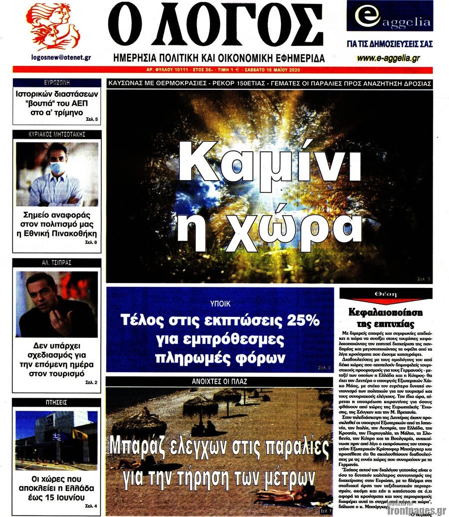 Τα σημερινά (16/5) πρωτοσέλιδα
