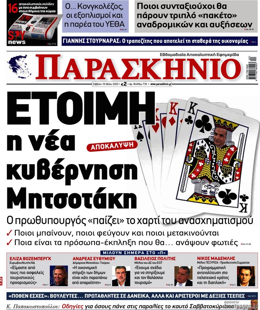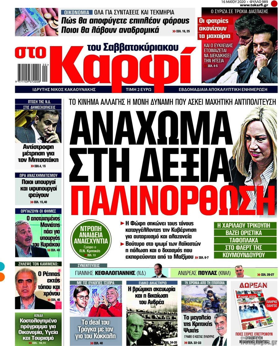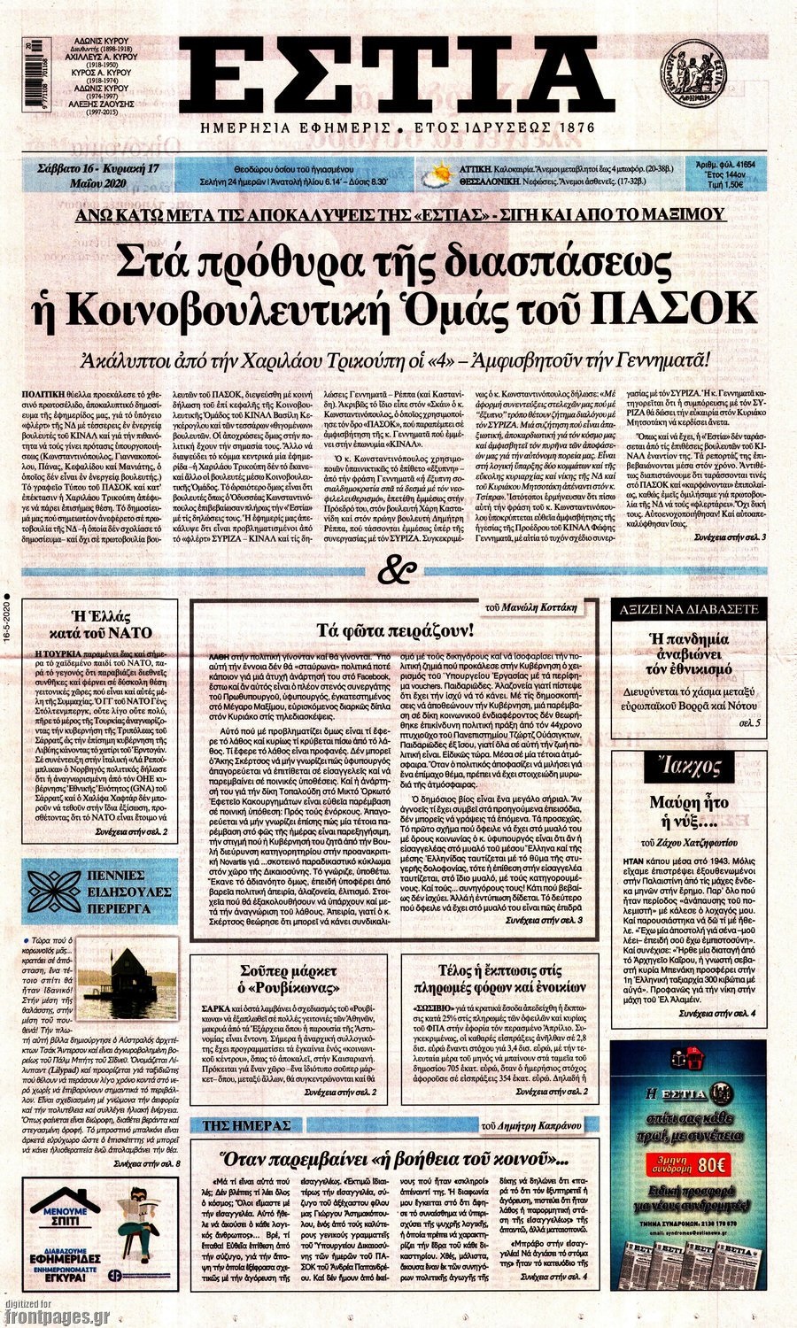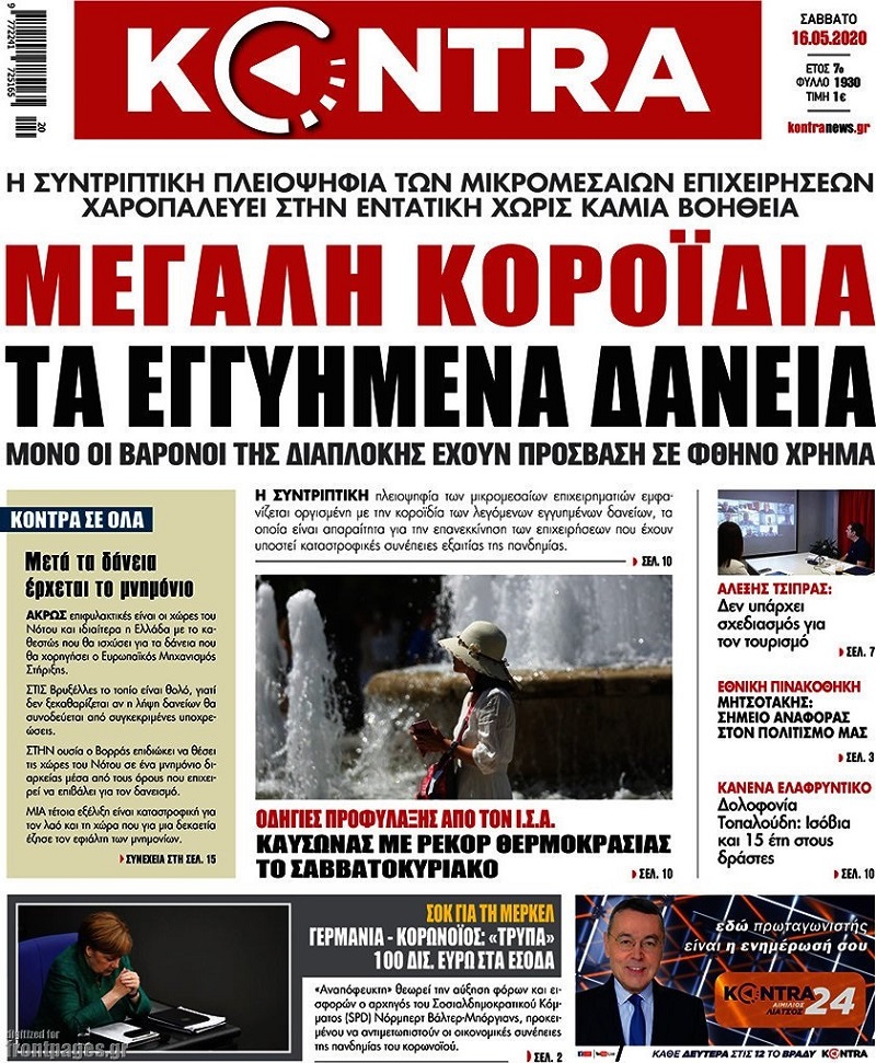 Τα σημερινά (16/5) πρωτοσέλιδα