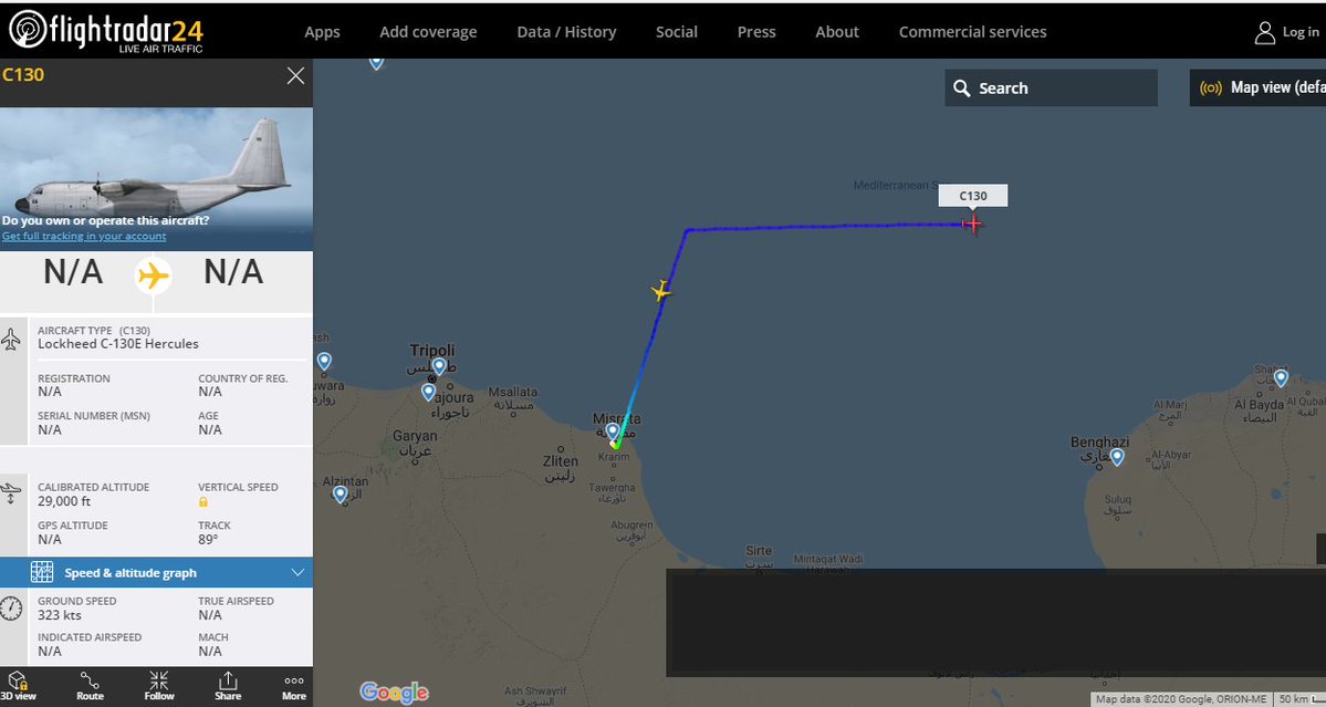 Στρατιωτικό αεροσκάφος τύπου C – 130 προσγειώνεται αυτή τη στιγμή στην Μισράτα. Στο στρατιωτικό αεροδρόμιο το οποίο βρίσκεται υπό τον έλεγχο των τούρκων