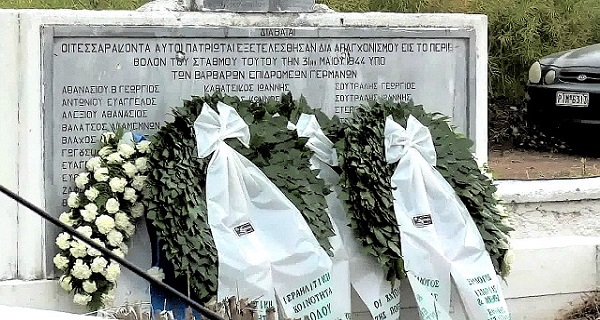 Εκεί στο σιδηροδρομικό σταθμό, στις 31 Μαΐου 1944, οι Γερμανοί κατακτητές και «Έλληνες» συνεργάτες τους απαγχόνισαν 40 μέλη του ΕΑΜ που τους πήραν από τη λεγόμενη «Κίτρινη Αποθήκη» του Βόλου, όπου ήταν έγκλειστοι. Οι περισσότεροι ήταν από χωριά του Πηλίου και ανάμεσά τους ήταν και μία έγκυος.