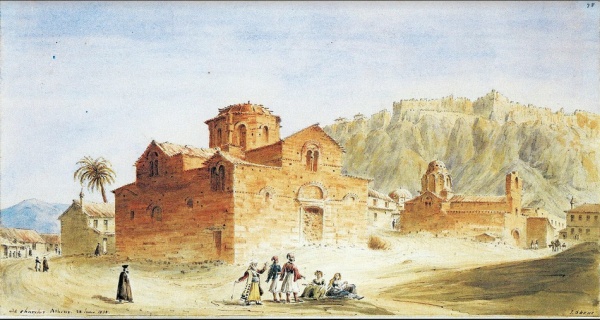 Φωτογραφία: Οι Εκκλησίες του Προφήτη Ηλία και των Ταξιαρχών, υδατογραφία James Skene. Από τις συλλογές του Εθνικού Ιστορικού Μουσείου