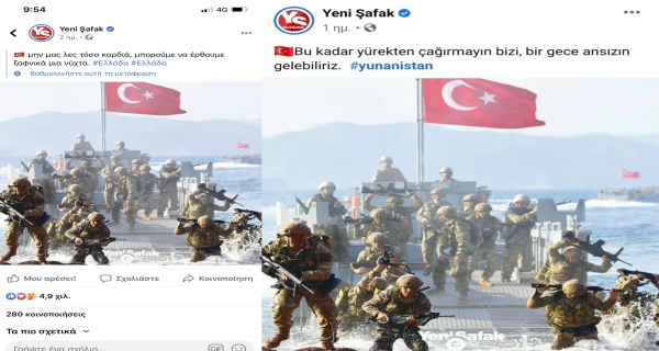 Με μια φωτογραφία Τούρκων στρατιωτών στο facebook και το σχόλιο «Τόσο εγκάρδια μην μας καλείτε, καθώς μπορεί ξαφνικά μία βραδιά να έρθουμε», απευθύνεται στην Ελλάδα με ξεκάθαρο νόημα!