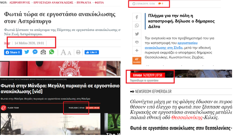 Ενδεικτικά, μόνο για το τελευταίο χρονικό διάστημα, με μία πρόχειρη ματιά στο διαδίκτυο διαπιστώνουμε ότι είχαμε αρκετές φωτιές σε εργοστάσιο ανακύκλωσης, εκτός από την πρόσφατη στην Μεταμόρφωση: