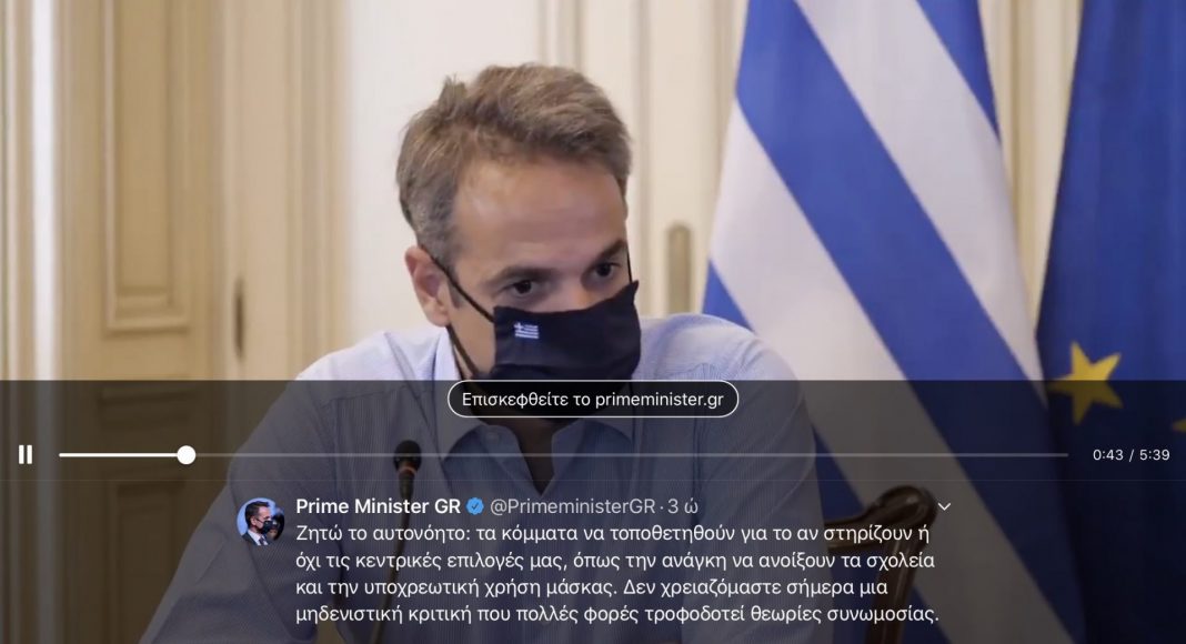Τρομερά καταβεβλημένος εμφανίζεται ο Έλληνας πρωθυπουργός στο σημερινό του μήνυμα για τις μάσκες στα σχολεία.