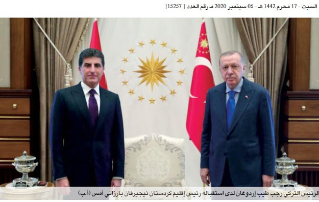Ο Πρόεδρος της Κουρδικής Περιφέρειας του Ιράκ, Νετσιρβάν Μπαρζανί, συζήτησε με τον Τούρκο Πρόεδρο Ρετζέπ Ταγίπ Ερντογάν και τον υπουργό Εξωτερικών Μεβλούτ Τσαβούσογλου στην Άγκυρα χθες (Παρασκευή) τις διμερείς σχέσεις, ιδίως στον οικονομικό τομέα, εκτός από τη συνεργασία στον τομέα της καταπολέμησης του ΡΚΚ, σημειώνει η Asharq Al-Awsat που εκδίδεται στο Λονδίνο.