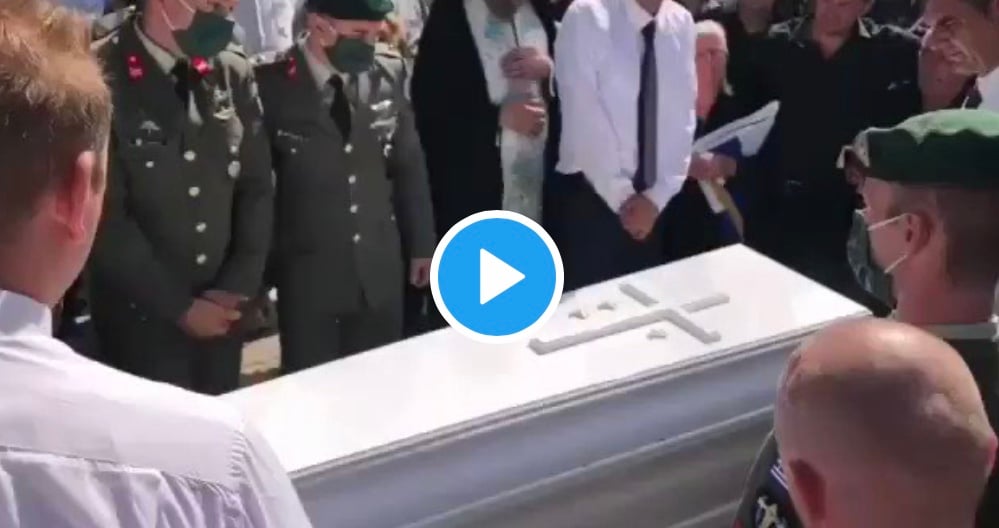 Καρφώνουν μια καρφίτσα με το σήμα της μονάδας τους στο φέρετρο με το χέρι και αυτό στη στρατιωτική εθιμοτυπία είναι ένα πλήρες σημάδι σεβασμού σε έναν συνάδελφό τους που έφυγε από τη ζωή εν ώρα καθήκοντος.