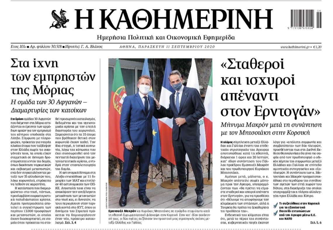 Αποκαλυπτικη είναι η Καθημερινή με πρωτοσέλιδο ρεπορτάζ της για τη Μόρια όπου μιλάει για τη δράση συγκεκριμένης ομάδας αλλοδαπών με εγκληματικές δραστηριότητες την οποία έρευνα   η αστυνομία για τον εμπρησμό της Μοριας.
