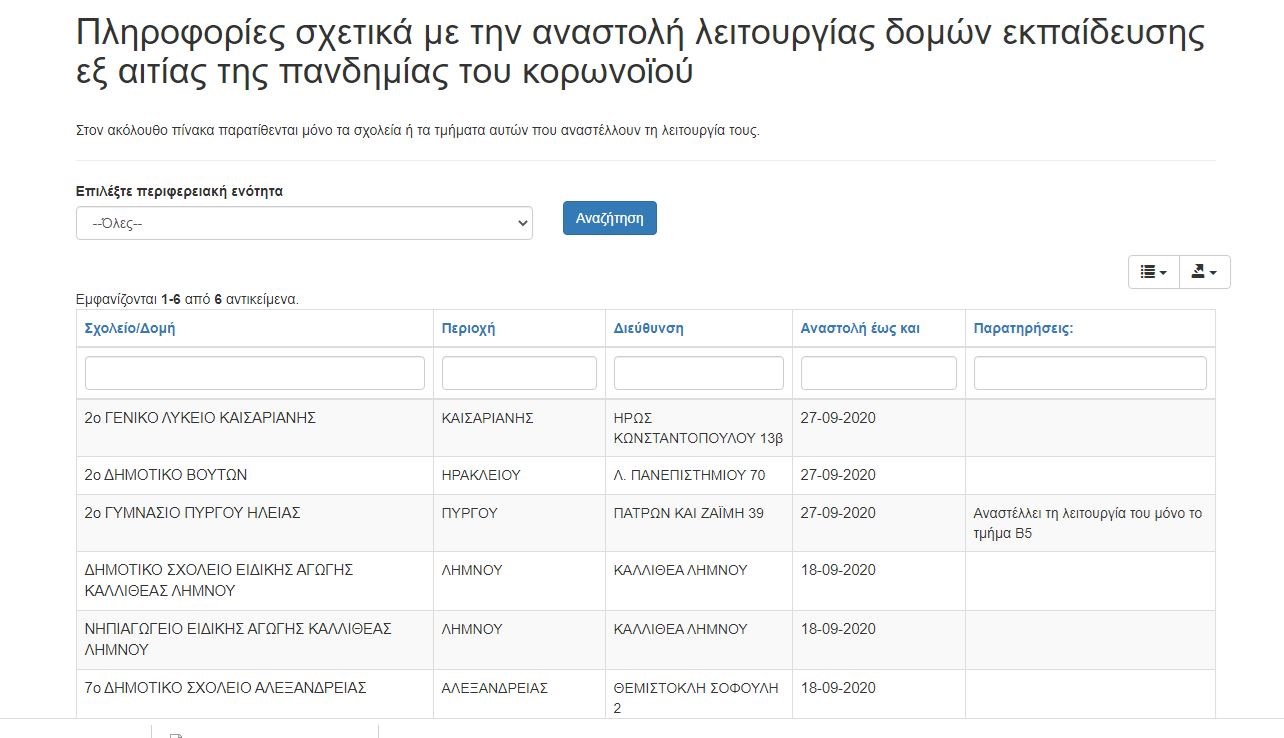Επίσης ανέστειλε την λειτουργία του το τμήμα Β5 του 2ου Γυμνασίου Πύργου Ηλείας (κλειστό έως τις 27/09).
