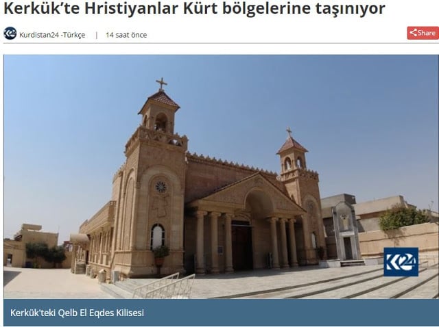 Οι Χριστιανοί από το Κιρκούκ αναγκάζονται είτε να μεταναστεύσουν είτε να εγκατασταθούν σε περιοχές όπου ζουν οι Κούρδοι για να αποφύγουν το πρόβλημα ασφάλειας και την πίεση εναντίον τους, γράφει κουρδικό δημοσίευμα.
