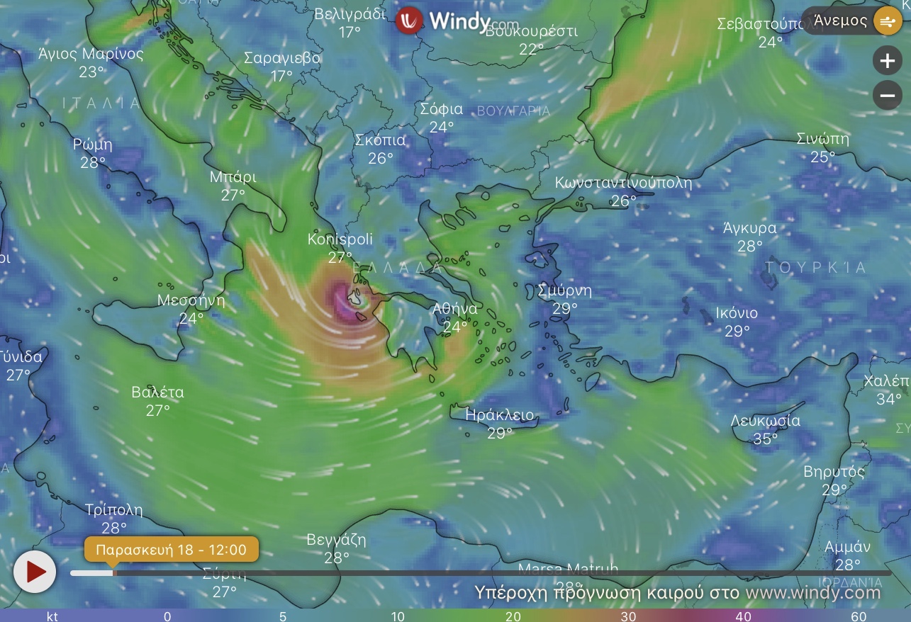 Δείτε live την πορεία του κυκλώνα Ιανος – Που βρίσκεται κάθε λεπτό και ποιες περιοχές απειλεί