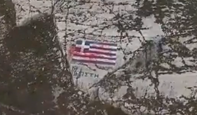 Τα τουρκικά κανάλια που καμαρώνουν για αυτή τη βέβηλη πράξη μεταδιδουν πως drones έριξαν κόκκινο χρώμα πάνω στη σημαία.