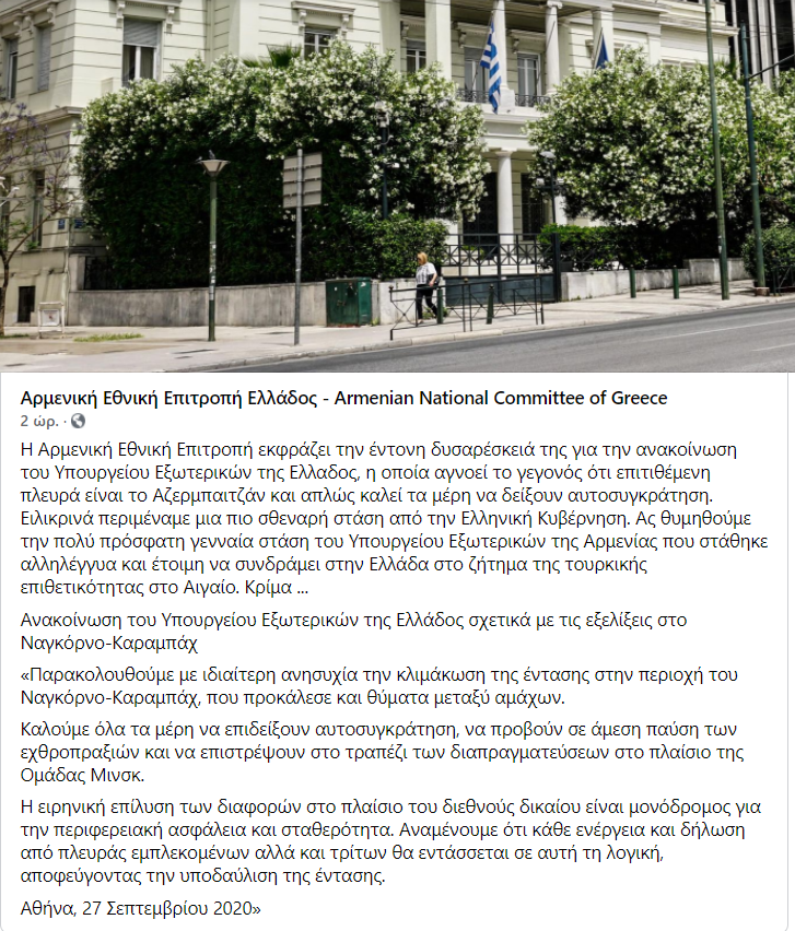 Δείτε και την οργισμένη ανακοίνωση της Αρμένικης εθνικής επιτροπής της Ελλάδος