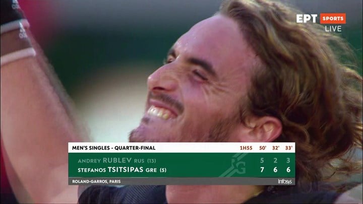 Εκπληκτική εμφάνιση του Τσιτσιπα που νίκησε τον Ρώσο Αντρέι Ρούμπλεφ και προκρίθηκε για πρώτη φορά στην καριέρα του στα ημιτελικά του γαλλικού γκραν σλαμ.
