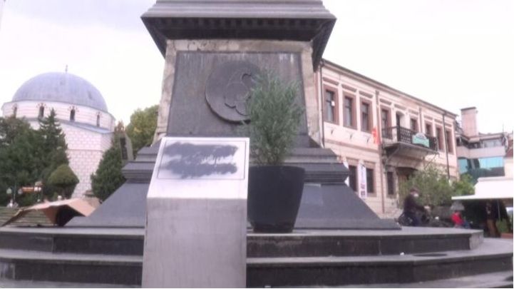 Παρόμοια πινακίδα τοποθετήθηκε, όπως σε πολλά μνημεία των Σκοπίων και του Μοναστηριού και άλλων πόλεων ως υποχρέωση, έπειτα από τη συμφωνία Σκοπίων και Αθήνας, γνωστής ως «Συμφωνία των Πρεσπών».