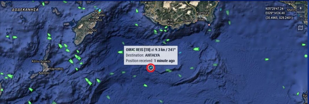 Πλησιάζουν στο Καστελόριζο το Oruc Reis και η συνοδεία του, η οποία περιλαμβάνει 10 πολεμικά πλοία! Ένα από πλοία υποστήριξης άνοιξε το σύστημα εντοπισμού του, αφού από την ώρα το απόπλου, η τουρκική αρμάδα τα είχε όλα κλειστά.