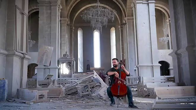 Μουσική ερμηνεία και μήνυμα ελπίδας για την Αρμενία, μέσα από τα ερείπια της ιστορικής εκκλησίας στο Σούσι στο Ναγκόρνο Καραμπάχ.