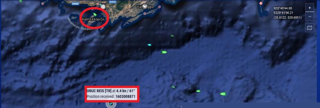 Το Oruc Reis για πρώτη φορά μετά από την τελευταία έξοδο του, “έσπασε” το όριο απόστασης των 20 ν.μ από το Καστελόριζο.