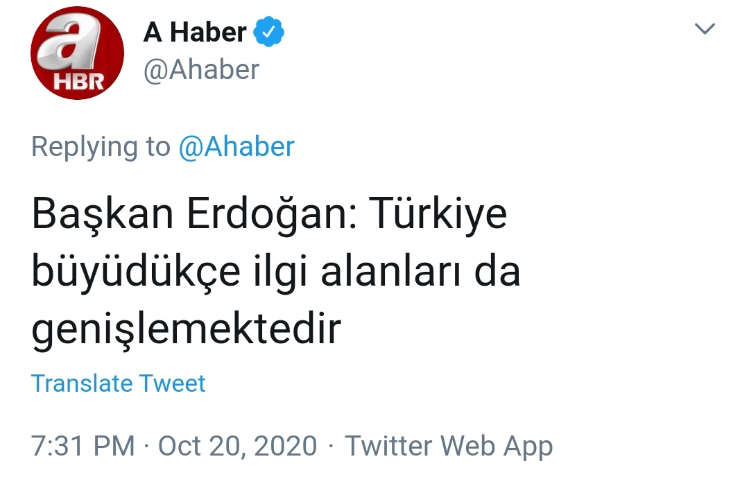 Πριν από λίγο ο Ταγίπ δήλωσε τα εξής :”Όσο ισχυροποιείται η Τουρκία, διευρύνονται και οι περιοχές ενδιαφέροντος της”