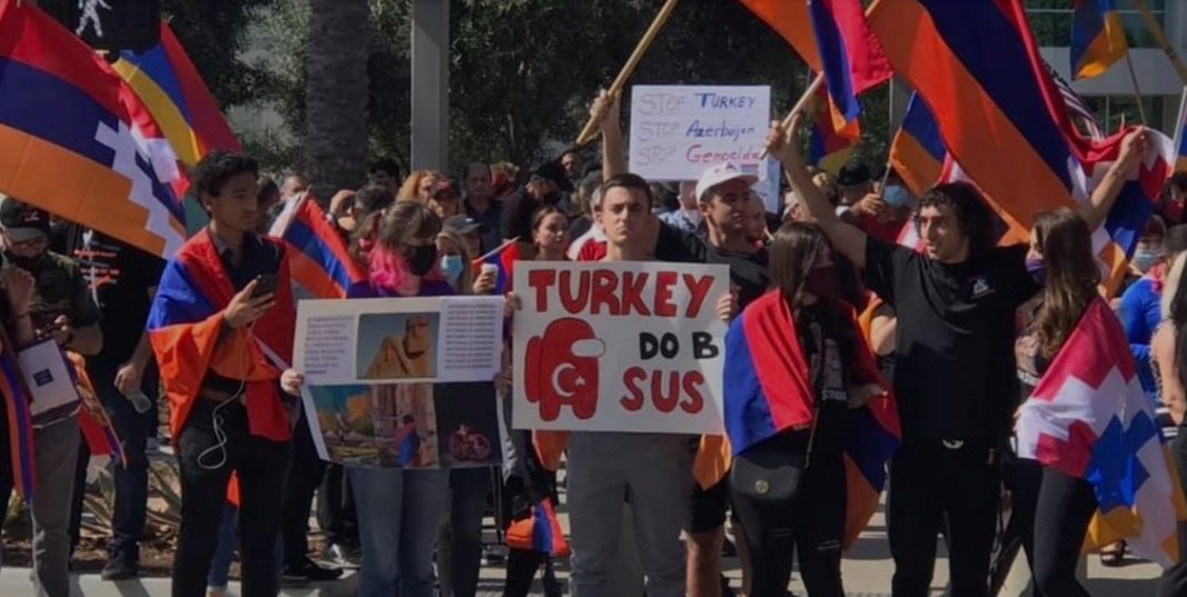 Μια ομάδα Αμερικανών-Αρμενίων ακτιβιστών πραγματοποίησε χθες διαμαρτυρία κοντά στο Carlsbad, έδρα της εταιρείας ViaSat στην Καλιφόρνια, απαιτώντας από την εταιρεία να σταματήσει την πώληση εξοπλισμού δορυφορικών συστημάτων στην Τουρκία.