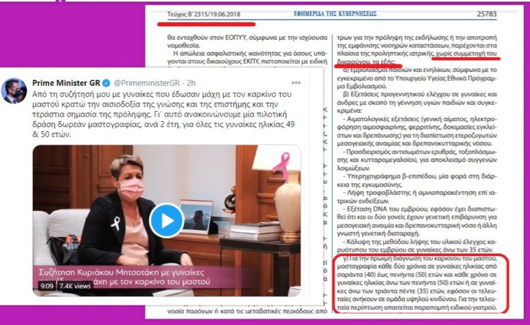 Ο Κυριάκος, ανακοινώνει ως πιλοτική δράση την δωρεάν μαστογραφία ανα 2 έτη για γυναίκες 49 -50 ετών, ξεχνώντας μάλλον πως κάτι τέτοιο έχει νομοθετηθεί απο 19/06/2018, απο αυτόν τον αλήτη τον Πολάκη που κάπνιζε.
