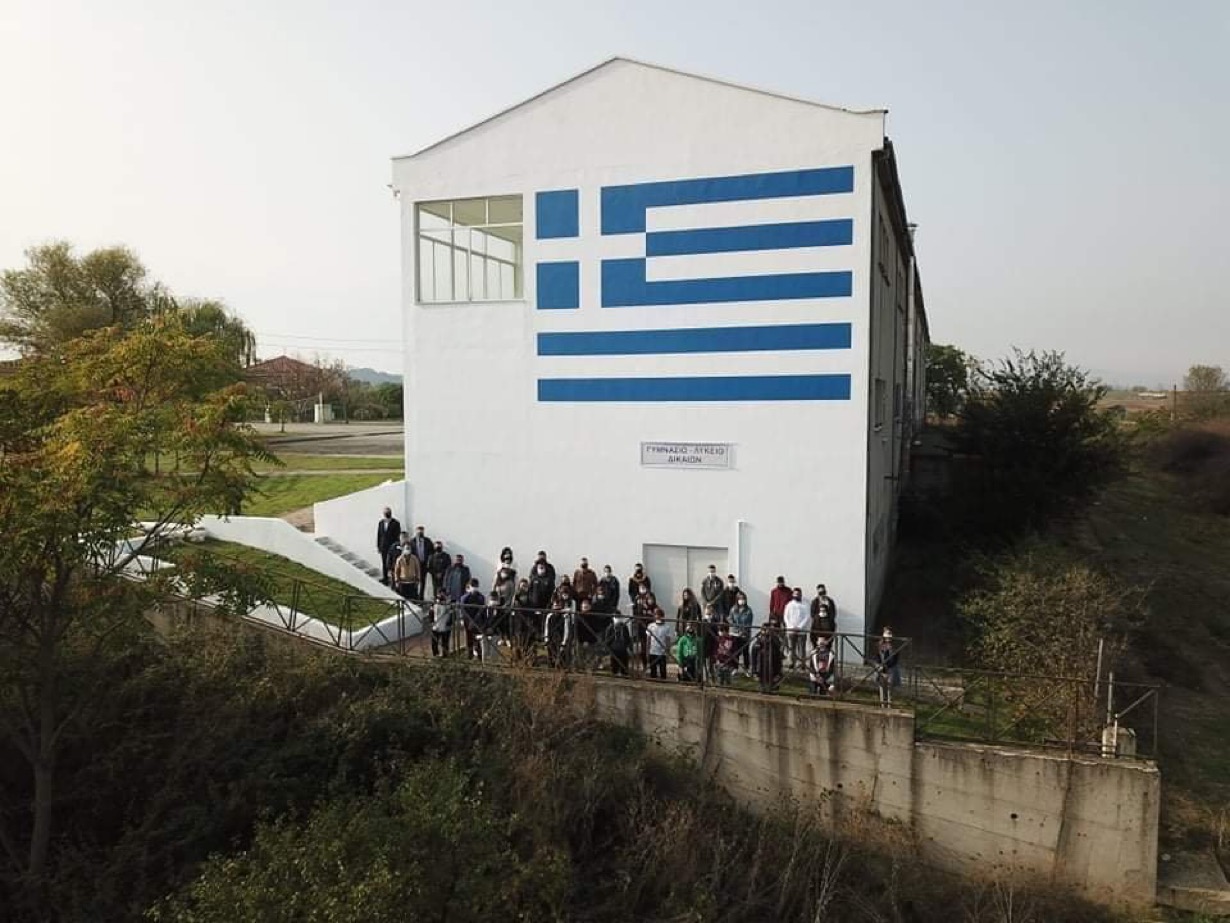 Σήμερα, γιορτή της Σημαίας, παρουσιάστηκε στο βορειότερο σχολείο της Ελλάδος, στα Δίκαια του Έβρου η διαστάσεων 5 επί 7 μέτρα ελληνική σημαία.
