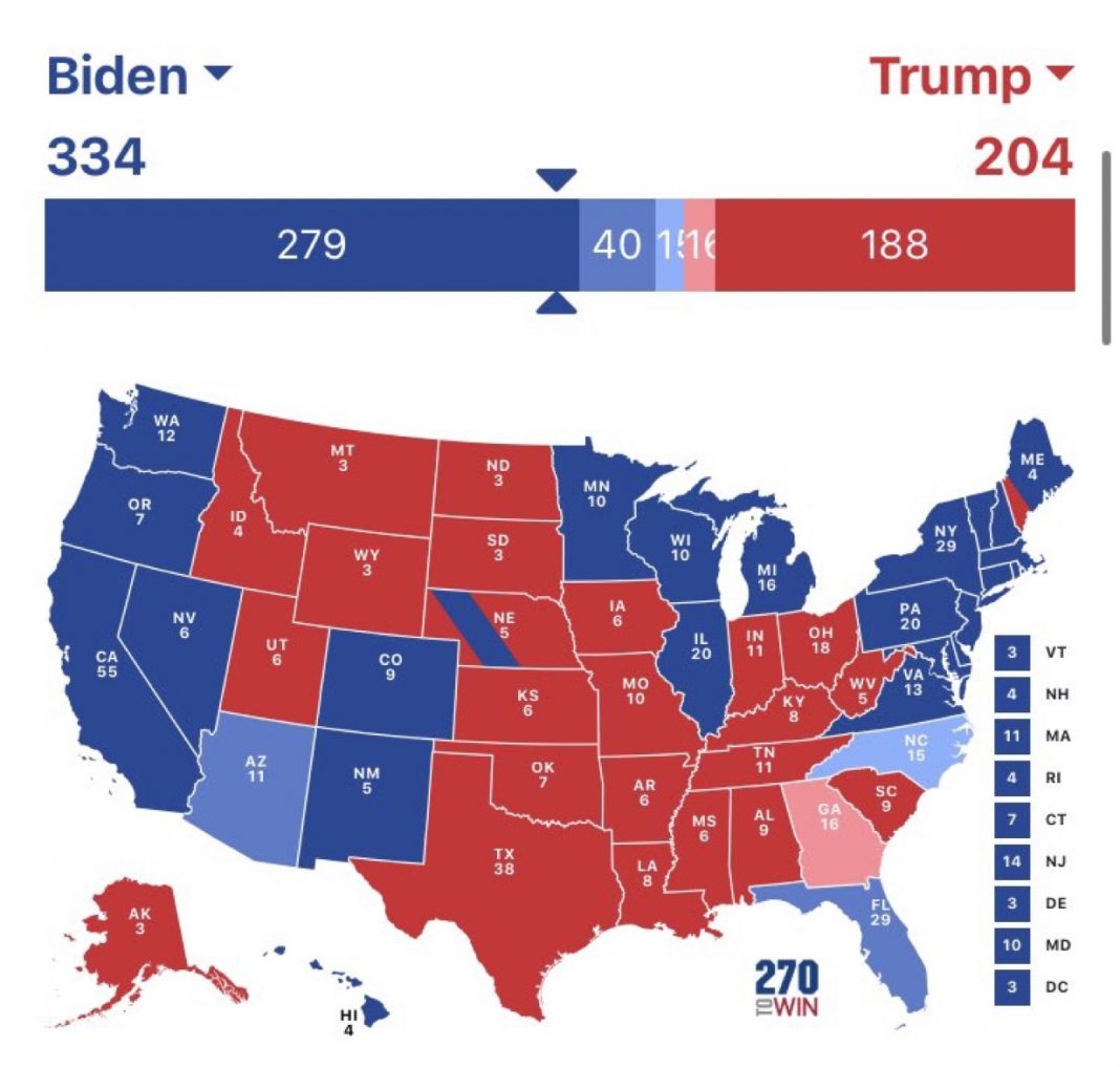 Σε εντελως αντίθετη περίπτωση (εάν η διαφορά δεν έχει μειωθεί τόσο ώστε να γυρίσει το triple crown – WI, MI, PA) τότε θα υπάρξει πρόβλημα για τον Biden καθως για να φτάσει τους 270 θα χρειαστεί το sun belt. Αυτό μπορεί να γίνει μόνο μέσω κινητοποίησης των μειονοτήτων να ψηφίσουν (καθως εκεί υπάρχουν πολλοί Hispanics και black votes). Προφανώς κι αυτό δε μπορεί να γίνει για τον Biden – δεν εμπνέει – γι αυτό η καμπάνια του προσπάθησε να το κάνει μέσω anti-Trump vote.