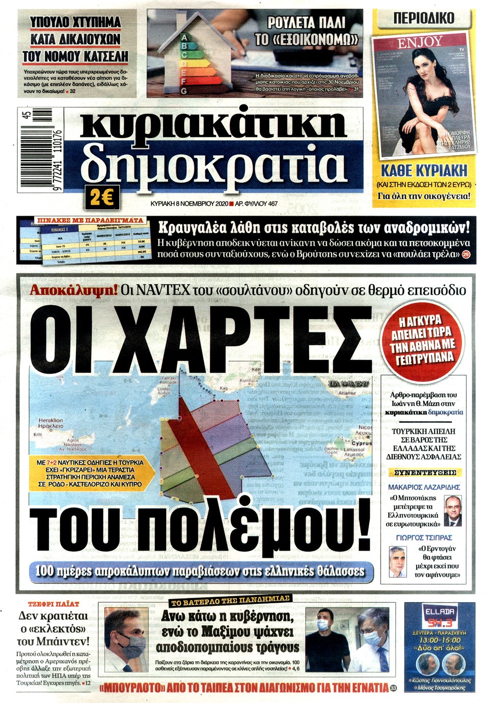 Αποκαλυπτικη για άλλη μια Κυριακή η εφημερίδα Δημοκρατία που κυκλοφορεί αύριο με πρωτοσέλιδο θέμα για τα Ελληνοτουρκικα και τους χάρτες του Ερντογαν και την Τούρκων για το Αιγαίο.