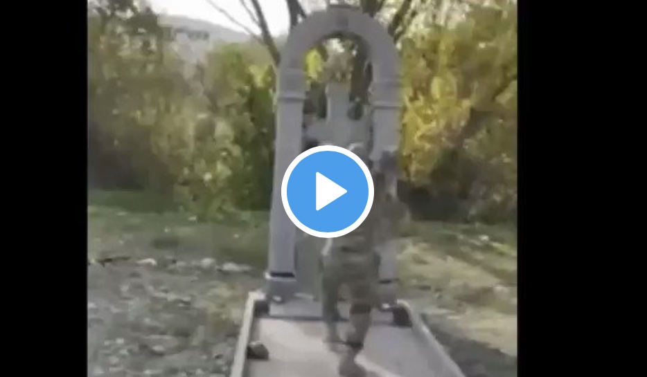 Τουρκοαζέροι στο πλαίσιο της εθνοκάθαρσηςστις περιοχές που ελέγχουν στο Ναγκόρνο Κάραμπαχ, καταστρέφουν μνημεία των Αρμενίων.