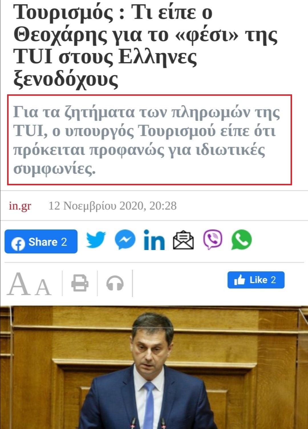 Μετά το φέσι της TUI και ενώ έχει υπογράψει ο Θεοχάρης στρατηγική συμφωνία με την TUI εμπαίζει τους ξενοδόχους αναφερόμενος σε ιδιωτικές συμφωνίες