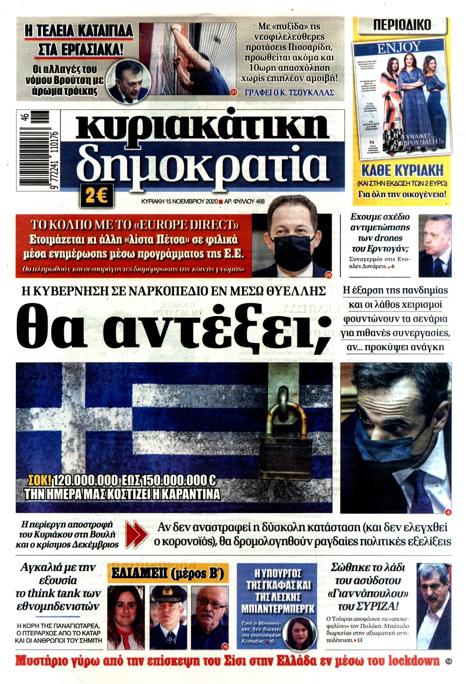 Αποκαλυπτικη για άλλη μια φορά η Κυριακάτικη Δημοκρατία που κυκλοφορεί αύριο με πρωτοσέλιδο θέμα το κόστος της πανδημίας και τις δυνατότητες της κυβέρνησης. Πόσο θα αντέξει;
