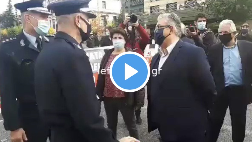 Ο αστυνομικός στον παράνομο Κουτσούμπα: “Θα σας παρακαλέσω (…) Σας ευχαριστώ κύριε Γενικέ και πάλι”.