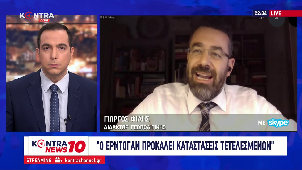 Ο Δρ. Γιώργος Φίλης PhD Διδάκτωρ Γεωπολιτικής, Καθηγητής Ευρωπαϊκών Θεμάτων, Αναλυτής Διεθνών Ζητημάτων στο δελτίο Kontra News 10 με τον Κωνσταντίνο Μαραβελίδη
