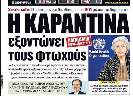 Πάταγο προκάλεσε η παγκόσμια αποκλειστικότητα που εξασφάλισε η «δημοκρατία» στο φύλλο του Σαββάτου, με την επιστημονική διευθύντρια του Παγκόσμιου Οργανισμού Υγείας να δηλώνει στην εφημερίδα μας ότι οι επιπτώσεις των lockdowns θα είναι δραματικές για πολύ μεγάλο μέρος του πληθυσμού.