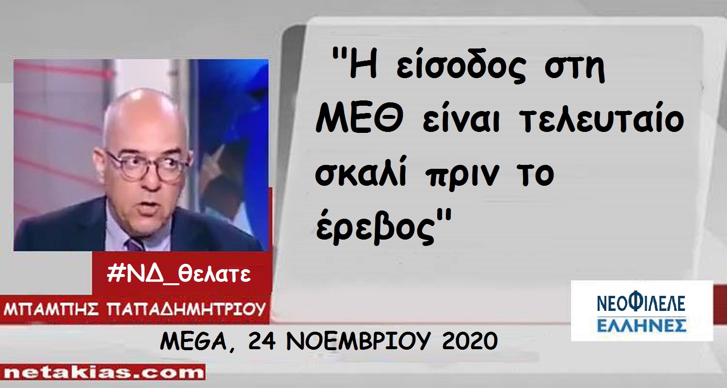 Μιλώντας στο Mega, και προσπαθώντας να δικαιολογήσει τα όσα είχε πει το πρωί ο υπουργός Επικρατείας, Γιώργος Γεραπετρίτης, ο οποίος ισχυρίστηκε ότι το ποσοστό θνητότητας ασθενών με Covid-19 που εισάγονται σε ΜΕΘ είναι πολύ μεγάλο και ότι περισσότερες ΜΕΘ θα σήμαιναν και περισσότερους θανάτους, ο Μπ. Παπαδημητρίου μάλλον τα έκανε χειρότερα.