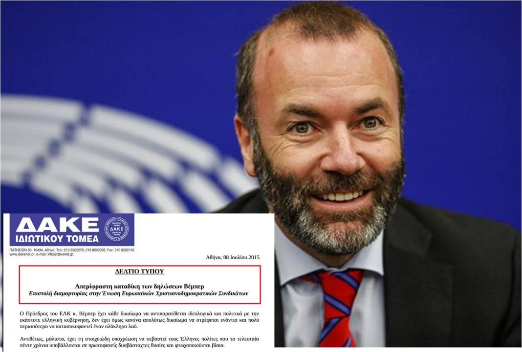 Από το 2015 η ΔΑΚΕ Ιδιωτικού τομέα τα “έψαλε” στον ανθέλληνα επικεφαλής του Ευρωπαϊκού Λαϊκού Κόμματος Μάνφρεντ Βέμπερ…