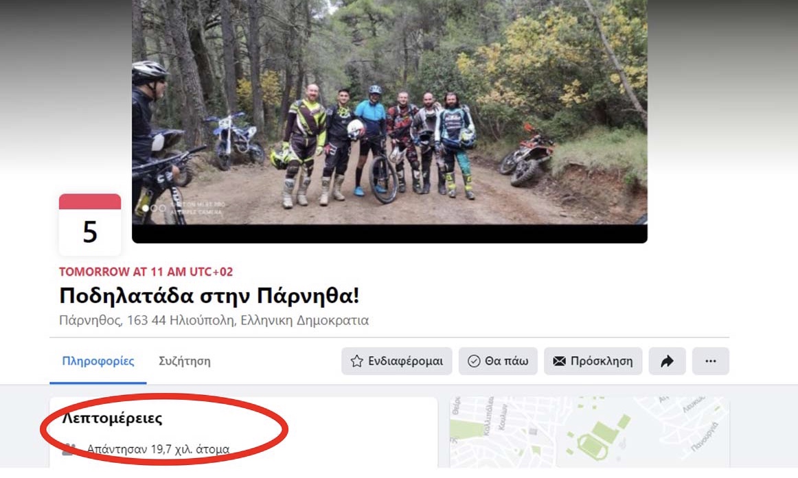 Δείτε τη φόρμα που μπορείτε να πάρετε μαζί σας εάν πάτεΤα κατορθώματα του Κυριάκου Μητσοτάκη και της συζύγου του στην Πάρνηθα όπου μετέβησαν για να κάνουν ποδήλατο (μιάμιση ώρα μακριά από το σπίτι τους) τρολάρoυν οι χρήστες του Facebook.H «Ποδηλατάδα στην Πάρνηθα» οργανώθηκε για το πρωί του Σαββάτου και μέχρι στιγμής πάνω από 19.000 άνθρωποι έχουν δηλώσει ενδιαφέρον είτε θα πάνε να ασκηθούν, με τις ευλογίες φυσικά του κ. Μητσοτάκη και του κ. Γεωργιάδη, ο οποίος διαβεβαίωσε και σήμερα ότι η αστυνομία δεν θα επιβάλλει πρόστιμα.Μπορεί η εκδήλωση να εκδηλώθηκε με χιουμοριστική διάθεση ωστόσο σύμφωνα με πηγές, στην ΕΛ.ΑΣ έχει δημιουργηθεί… πονοκέφαλος.Όσοι έχουν αποφασίσει να ακολουθήσουν το παράδειγμα του πρωθυπουργικού ζεύγους, καλού κακού ας έχουν μαζί τους και τη φόρμα που προτείνεται από διάφους χρήστες του διαδικτύου.Δείτε την διοργάνωση εδώΠρωτοσελιδα – Ειδήσεις
