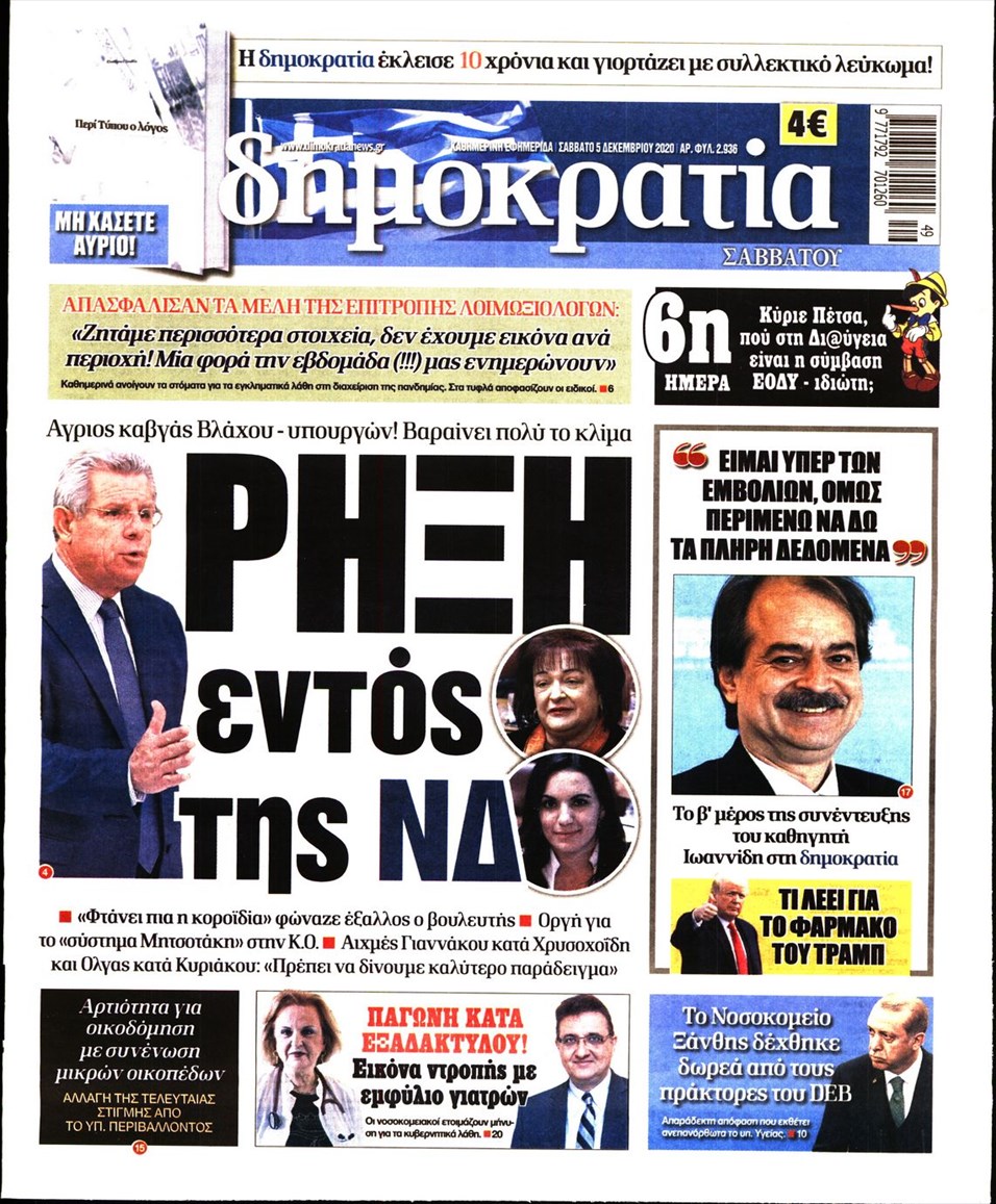 Με ένα αποκαλυπτικό ρεπορτάζ για την ρήξη εντός της ΝΔ κυκλοφορεί σήμερα η εφημερίδα Δημοκρατία.