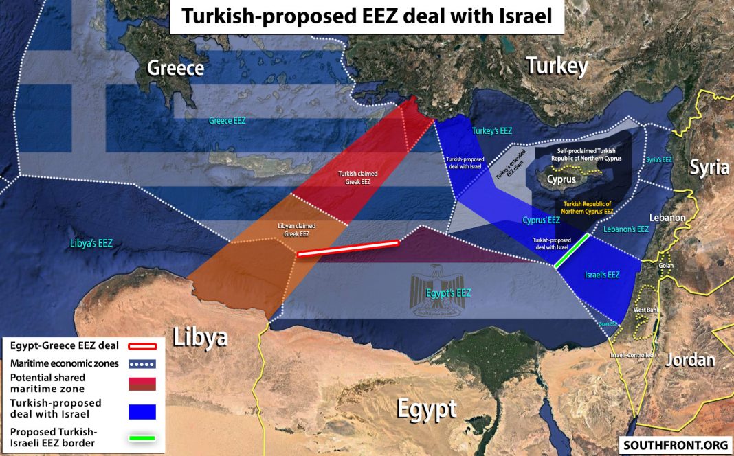 Ενώ μια τέτοια συμφωνία οριοθέτησης θα είναι πολύ επωφελής τόσο για την Τουρκία όσο και για το Ισραήλ, είναι επιτακτική ανάγκη να σημειωθεί ότι η γραμμή οριοθέτησης που θα χαράξουμε εν προκειμένω δεν θα αγγίξει το νησί της Κύπρου. Επιπλέον, η συμφωνία οριοθέτησης μεταξύ Ισραήλ και Τουρκίας δεν θα επηρεάσει τις τρέχουσες περιοχές θαλάσσιας δικαιοδοσίας της Αιγύπτου”.