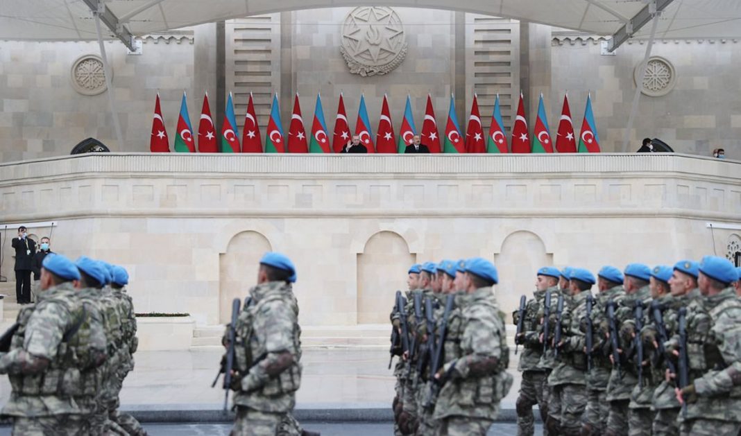 «Ρωμαϊκό θρίαμβο» θύμιζε η στρατιωτική παρέλαση στην πρωτεύουσα του Αζερμπαϊτζάν για την ήττα των Αρμενίων, φέρνοντας αναγκαστικά στη μνήμη μια άλλη δραματική ιστορική περίοδο: τη γενοκτονία των Αρμενίων από τους Οθωμανούς το 1915 και την εξόντωση 1.500.000 ανθρώπων. Μάλιστα, οι διοργανωτές της παρέλασης επέλεξαν να περάσουν μπροστά από τον Ερντογάν και τον Αζέρο πρόεδρο Ιλχάμ Αλίεφ τα λάφυρα του πολέμου που οι Αζέροι πήραν από τους ηττημένους Αρμενίους: φορτηγά μετέφεραν τα κατεστραμμένα άρματα μάχης και τους εκτοξευτήρες πυραύλων Κατιούσα των Αρμενίων, για να τα δουν οι συγκεντρωμένοι.