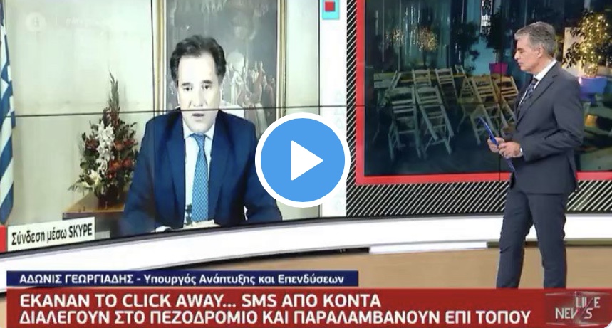 Κάθε φορά που θα δείχνεται κάποιο κατάστημα να παραβιάζει τον τρόπο λειτουργίας του click away θα κλείνουμε το κατάστημα και θα φταίτε εσείς είπε στον Νίκο Ευαγγελάτο ο Αδωνις Γεωργιαδης.