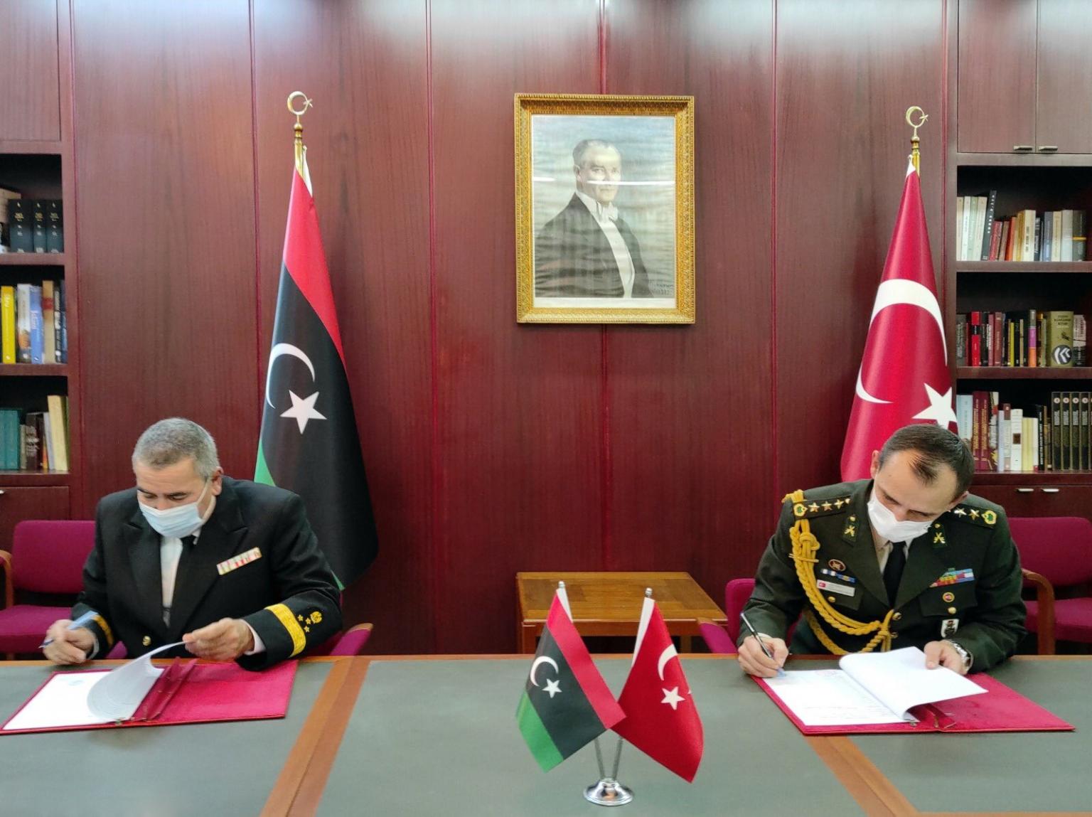 Το τουρκικό Υπουργείο Άμυνας δήλωσε σήμερα ότι υπέγραψε συμφωνία για τη χορήγηση 47 τύπων υλικών που χρειάζεται η Διοίκηση των Ναυτικών Δυνάμεων της Λιβύης, που ελέγχεται από τον Σάρατζ, χωρίς να αποκαλυφθεί η φύση τους.
