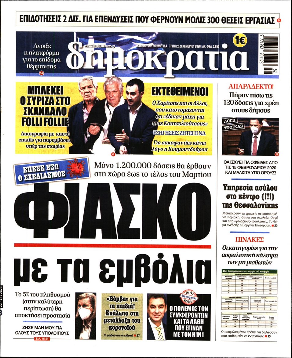 Χειραγώγηση του πληθυσμού με τεχνητές ελλείψεις στις ποσότητες του εμβολίου με στόχο τη δημιουργία φόβου έλλειψης ώστε να τρέξουν περισσότεροι να εμβολιαστούν Πρωτοσελιδα – Ειδήσεις