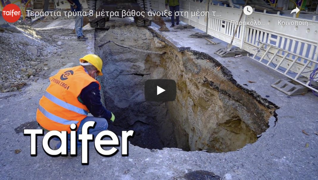 Τεράστια τρύπα βάθους 8 μέτρων άνοιξε στη μέση κεντρικού δρόμου της Θεσσαλονίκης (βίντεο)