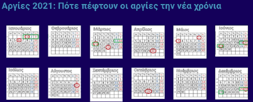 Τα τριήμερα που δημιουργούνται το 2021, λόγω αργιών: