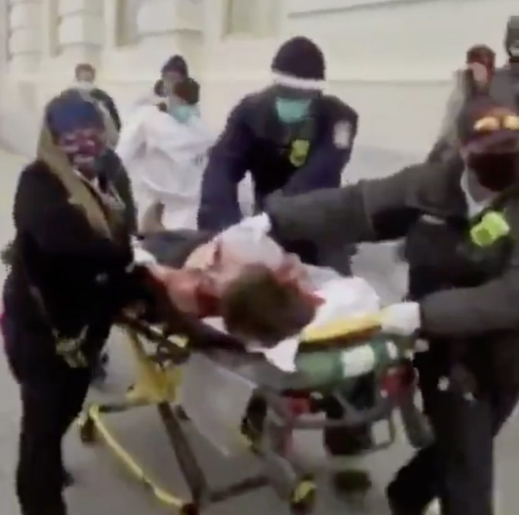 Η γυναίκα είναι ίσως διαδηλωτής – οπαδός του Τραμπ και βρίσκεται σε εξαιρετικά κρίσιμη κατάσταση καθώς δίνει μάχη για τη ζωή της. Πάντως υπάρχουν και πληροφορίες για Τραυματισμένη γυναίκα αστυνομικό που επίσης μεταφέρεται στο νοσοκομείο.