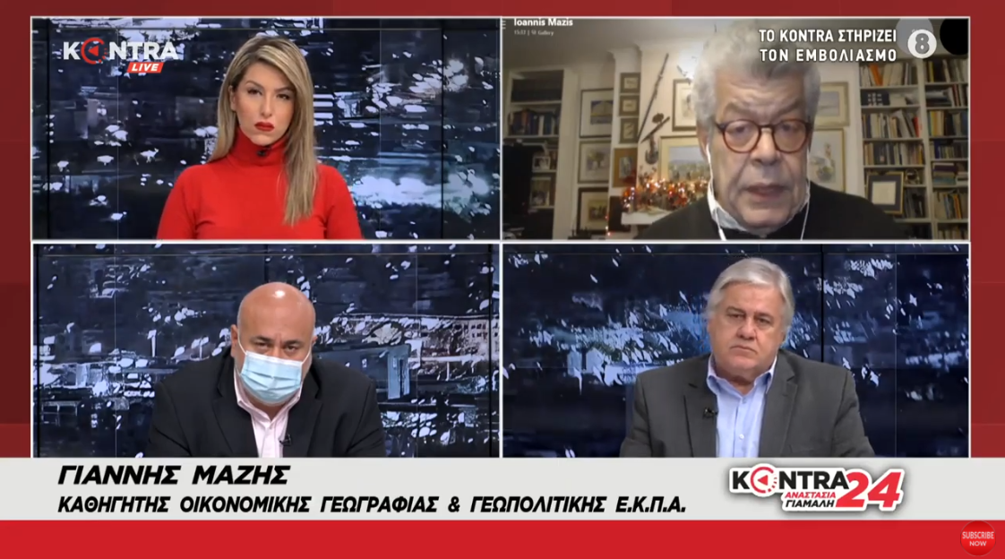 Ο Δρ Ιωάννης Μάζης Καθηγητής Οικονομικής Γεωγραφίας και Γεωπολιτικής στο Πανεπιστήμιο Αθηνών και Πρόεδρος του Τμήματος Τουρκικών Σπουδών και Σύγχρονων Ασιατικών Σπουδών Kontra24 με την Αναστασία Γιάμαλη