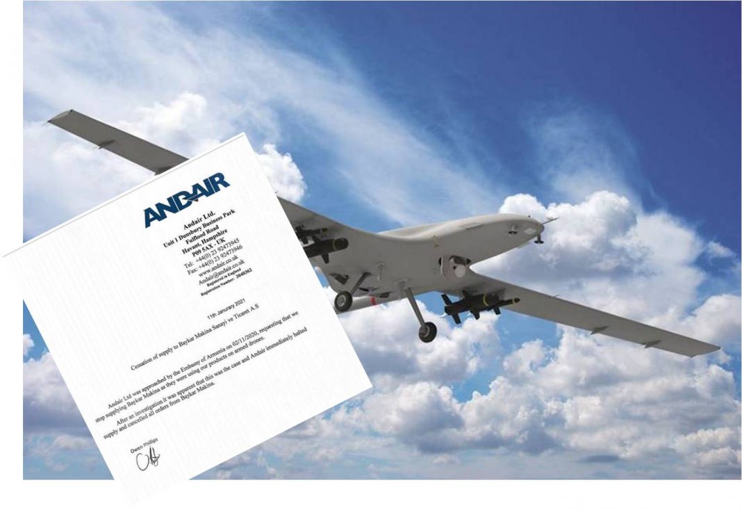 Η βρετανική εταιρεία Andair Ltd. σταμάτησε τις προμήθειες στην Baykar Makina, την εταιρεία που παράγει τα τουρκικά drones Bayraktar.
