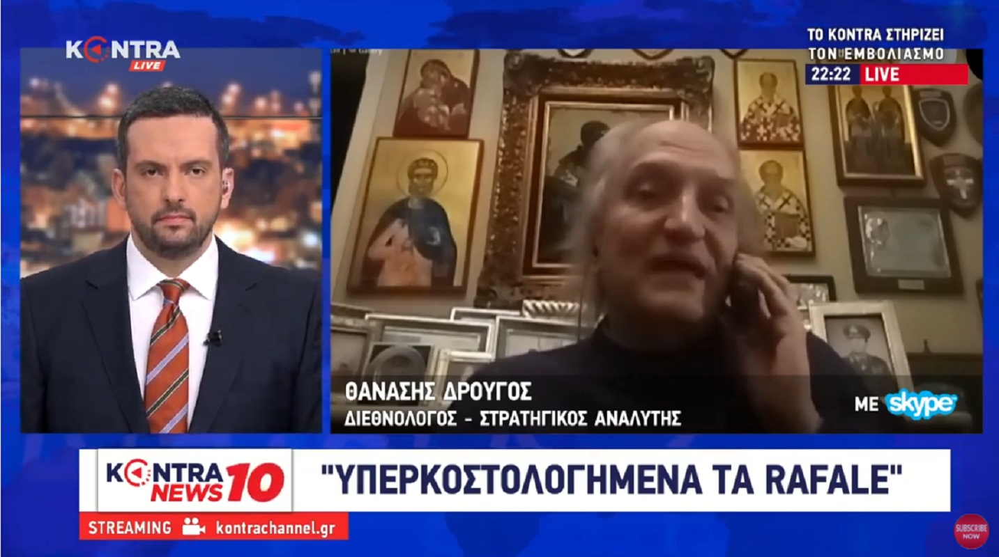 Ο διεθνολόγος και στρατηγικός αναλυτής Θανάσης Δρούγος στο δελτίο Kontra News 10 με τον Γιώργο Μελιγγώνη Μικρός ο αριθμός των Rafale και προβληματίζει το ότι είναι υπερκοστολογημένα τα 2,4 δισ για 18 αεροπλάνα. Θα μπορούσαμε να πάρουμε περισσότερα και πιο φθηνά. Ο Μπάιντεν δεν κάλεσε τους ηγέτες της Σαουδικής Αραβίας, των ΗΑΕ και της Αιγύπτου