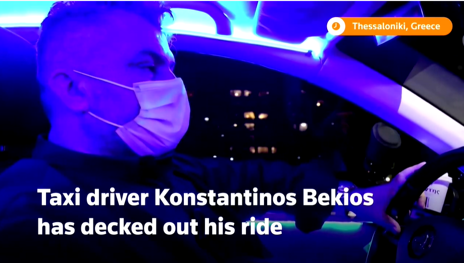 Ο Θεσσαλονικιός ιδιοκτήτης του ταξί Κώστας Μπέκιος, σε μια προσπάθεια να απομακρύνει τη θλίψη από τα πρόσωπα των πελατών του εξαιτίας των επιπτώσεων της πανδημίας, μετέτρεψε το ταξί του σε “club” κι έδωσε την ευκαιρία στους πελάτες του να “ξεσκάσουν” απολαμβάνοντας το ποτό τους, αλλά και τις ομορφιές της νυχτερινής Θεσσαλονίκης.